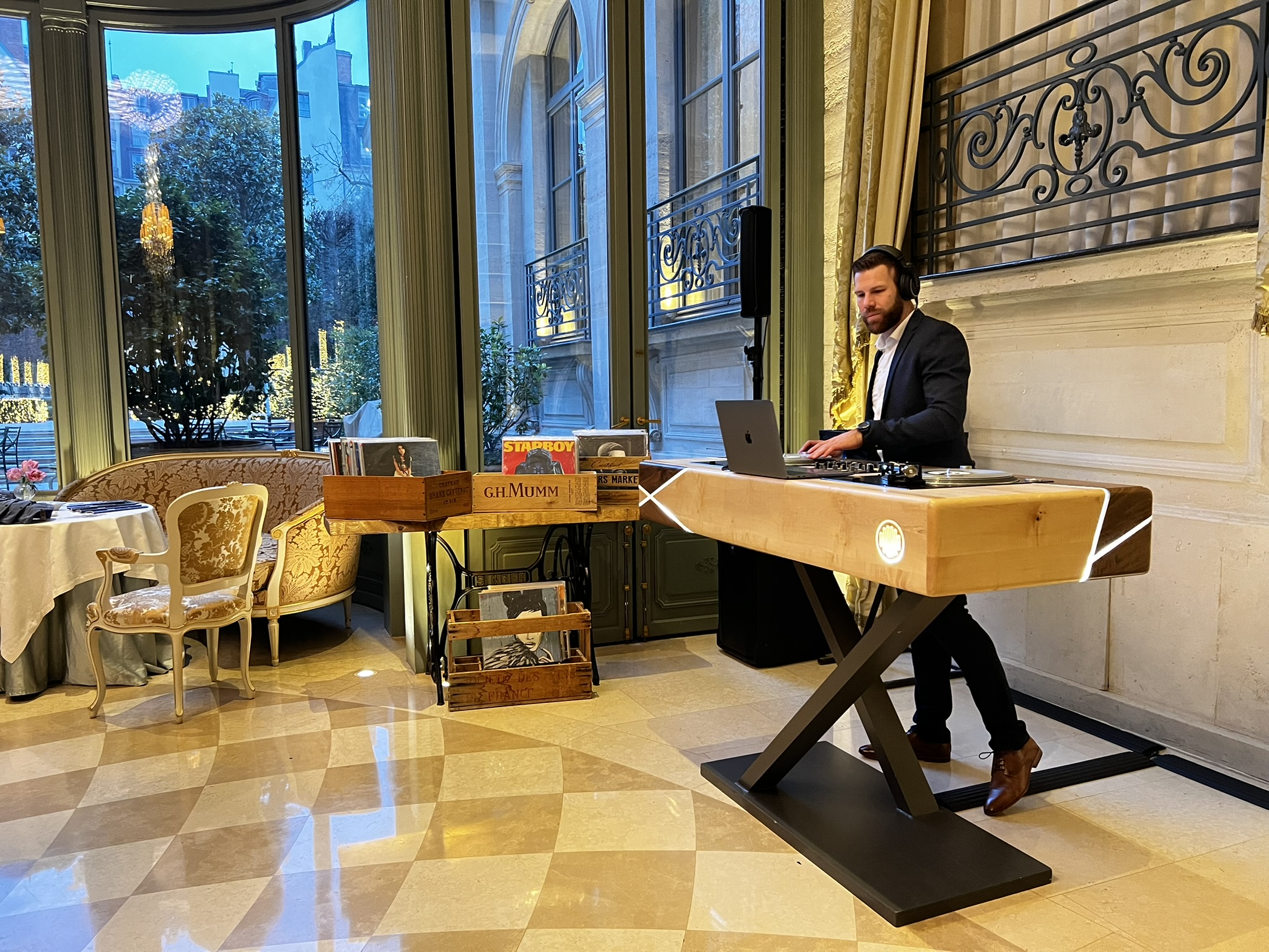 Luxe et élégance se sont rencontrés lors d’une collaboration exceptionnelle avec l’agence Evea au Ritz Paris à l’occasion de la semaine de l’intelligence artificielle en février. Pour l’occasion, nous avons eu le plaisir d’installer notre bar à vinyles le temps d’un déjeuner pour assurer l’ambiance musicale et la sonorisation de cet événement d’entreprise prestigieux. Ce fut un honneur de mettre notre savoir-faire au service de l’excellence française dans un lieu iconique avec une précision absolue.