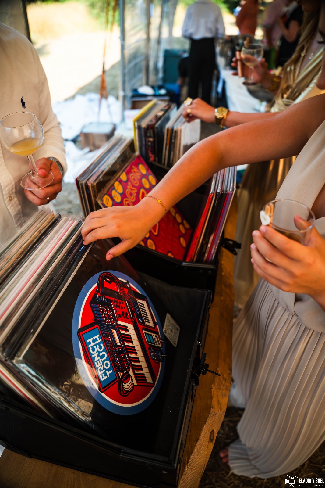 Design Événementiel : L’installation est conçue pour être esthétique. Meuble DJ artisanal, platines élégantes et vinyles exposés ajoutent un véritable cachet à votre espace de réception.